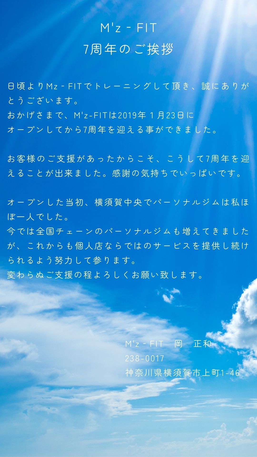 | 屋号 | M′z-fit(エムズフィット)パーソナルトレーニングジム |
